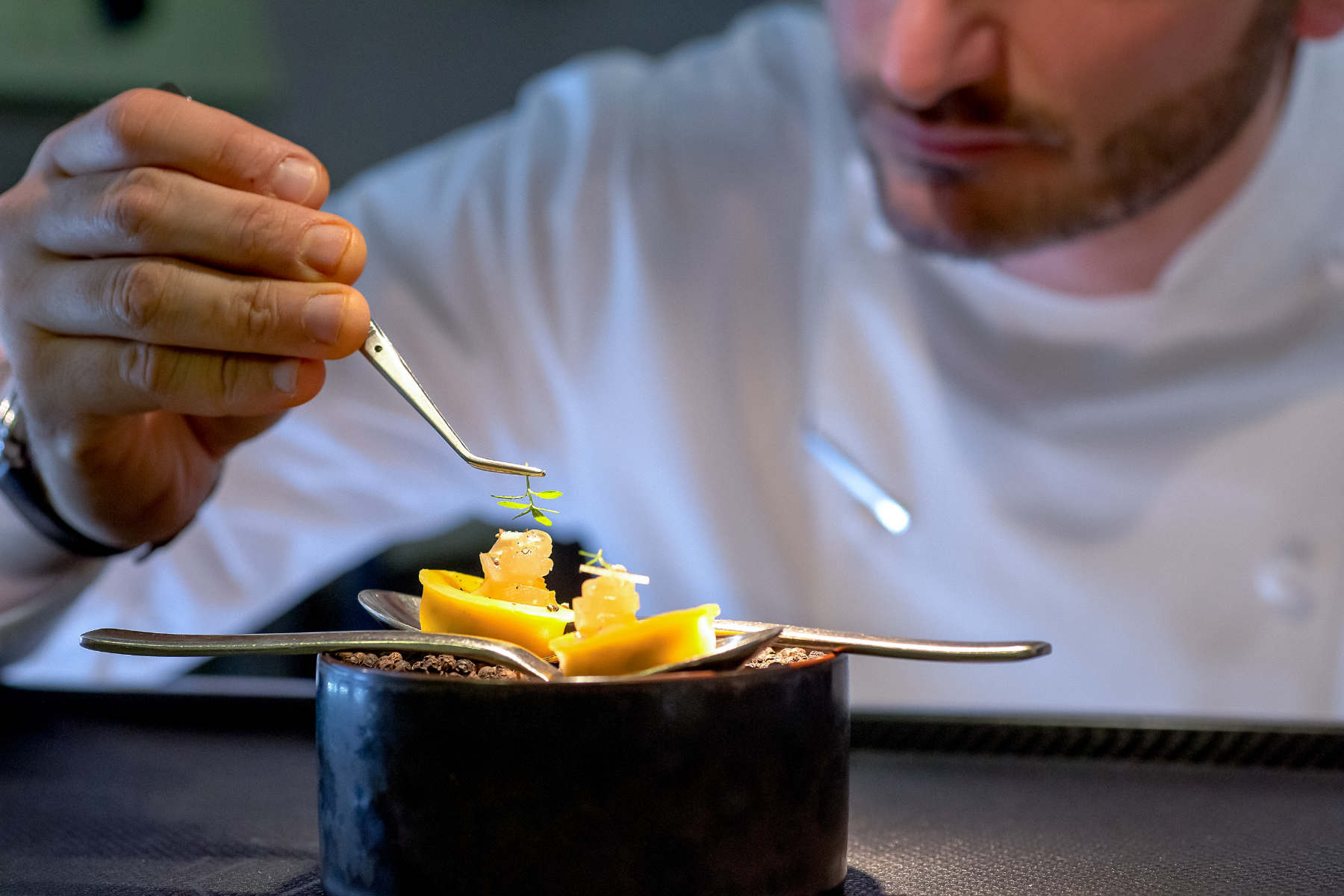 I suoi piatti si pongono in un dialogo continuo tra tradizione e contemporaneità, lasciandoci la libertà di trovare in alcuni la prevalenza dell’una sull’altra o, a volte, fondendole sapientemente in un’unica esperienza.