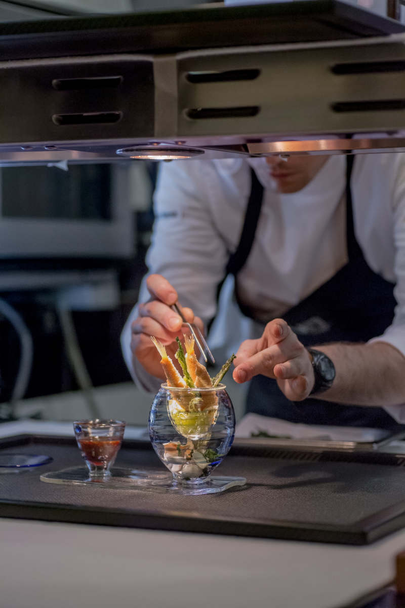 L’interior design del Vun Andrea Aprea è stato concepito per lasciare spazio all’esperienza gastronomica. Il risultato è un ambiente nel quale il protagonista assoluto è il cibo